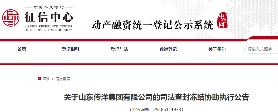 关于山东传洋集团有限公司的司法查封冻结协助执行公告
